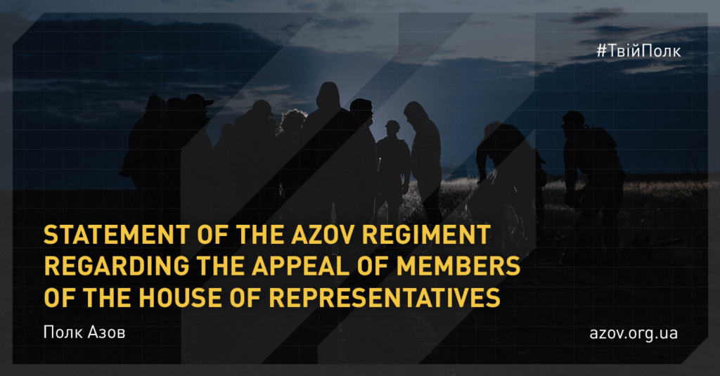 Notable publicity these days received the appeal of 40 members of the US representatives to recognize the Azov Regiment as a terrorist organization. The management of the Azov Regiment states that this appeal is nothing more than an information attack on Ukraine, its sovereignty and state security.
