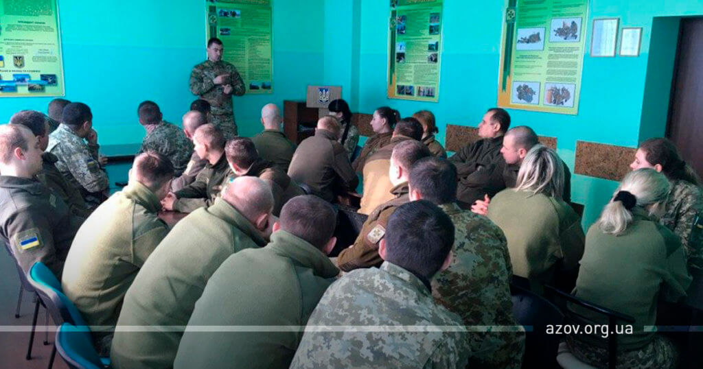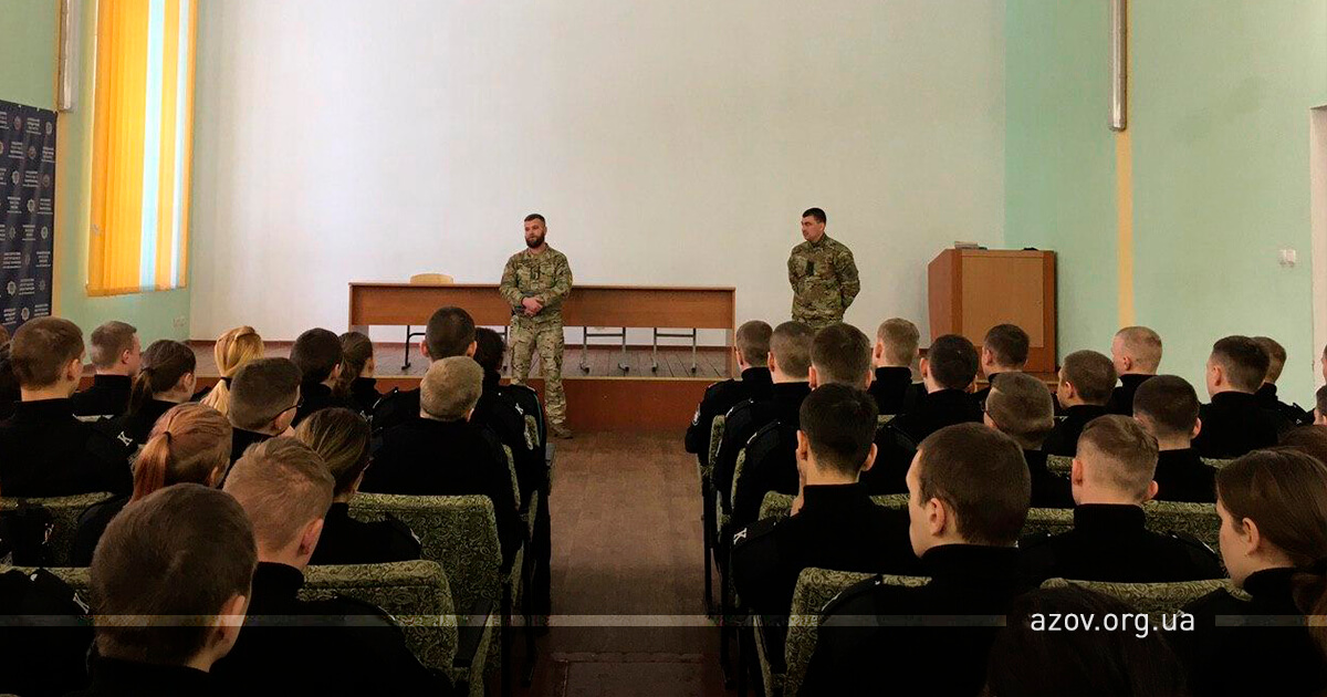 Офіцер полку «Азов», кандидат політичних наук Юрій Михальчишин (друг Нахтігаль) та заступник командира «Азову» з роботи з особовим складом друг Калина провели низку ідеологічно-просвітніх заходів для військовослужбовців міста Маріуполь та курсантів Донецького юридичного інституту МВС України.