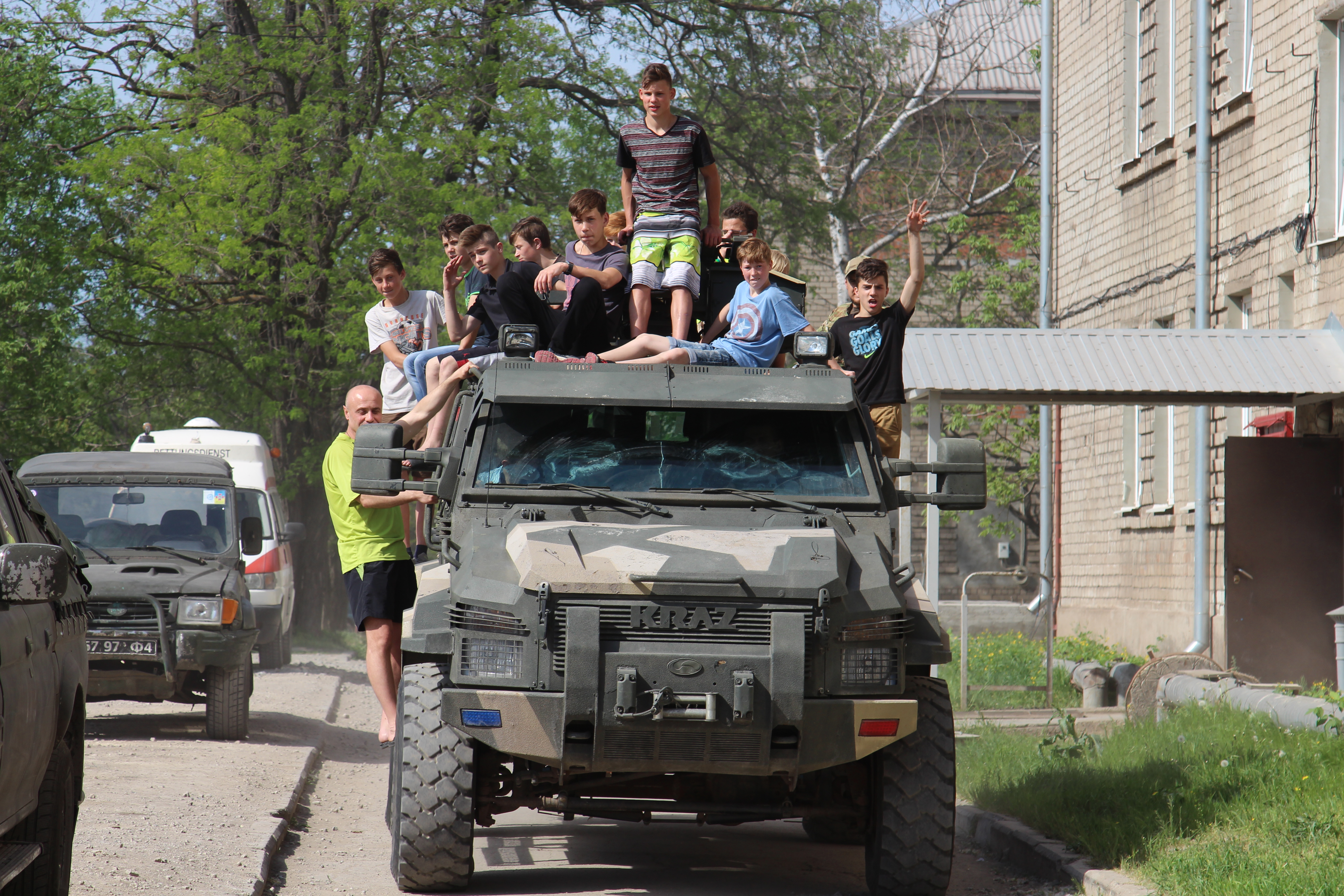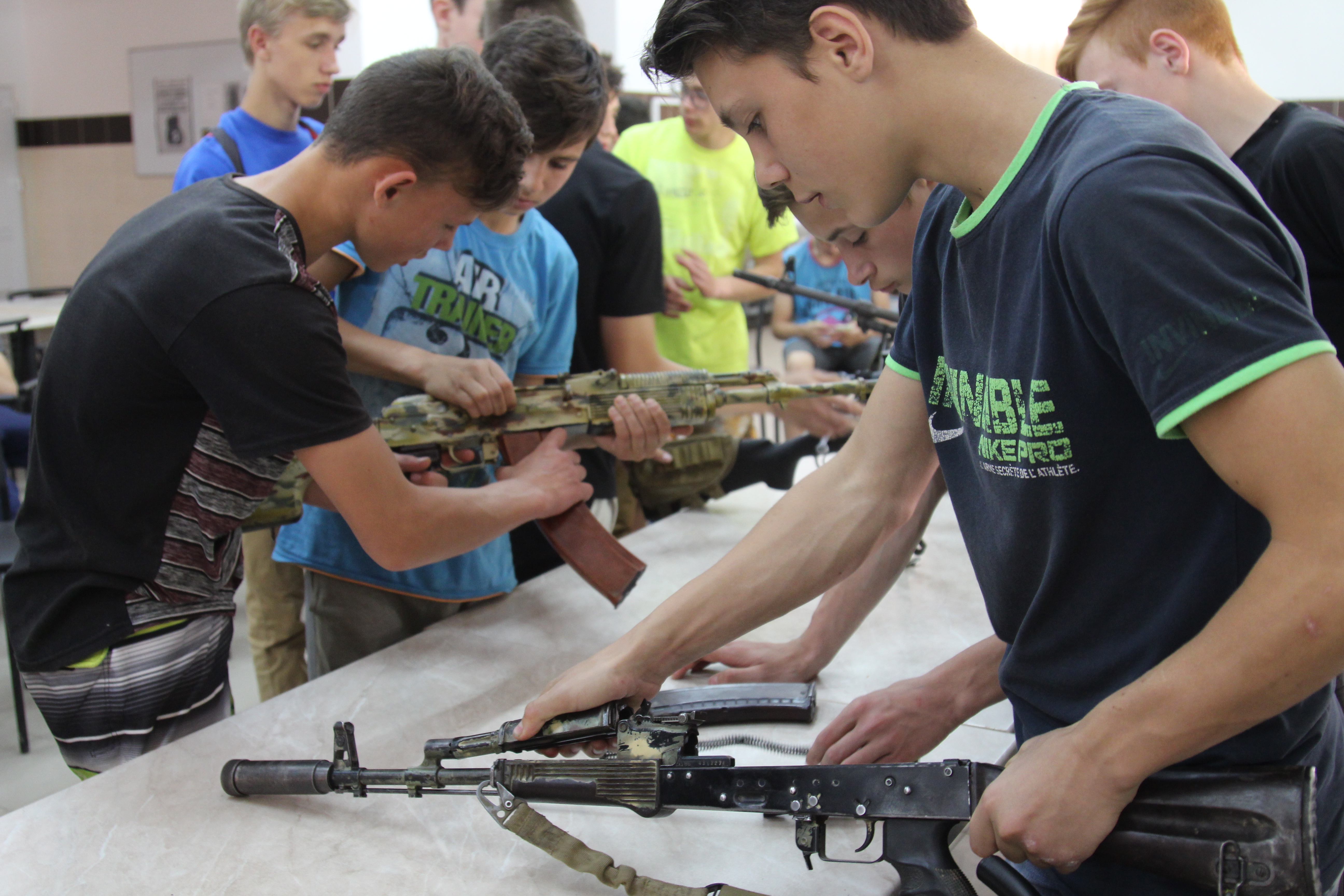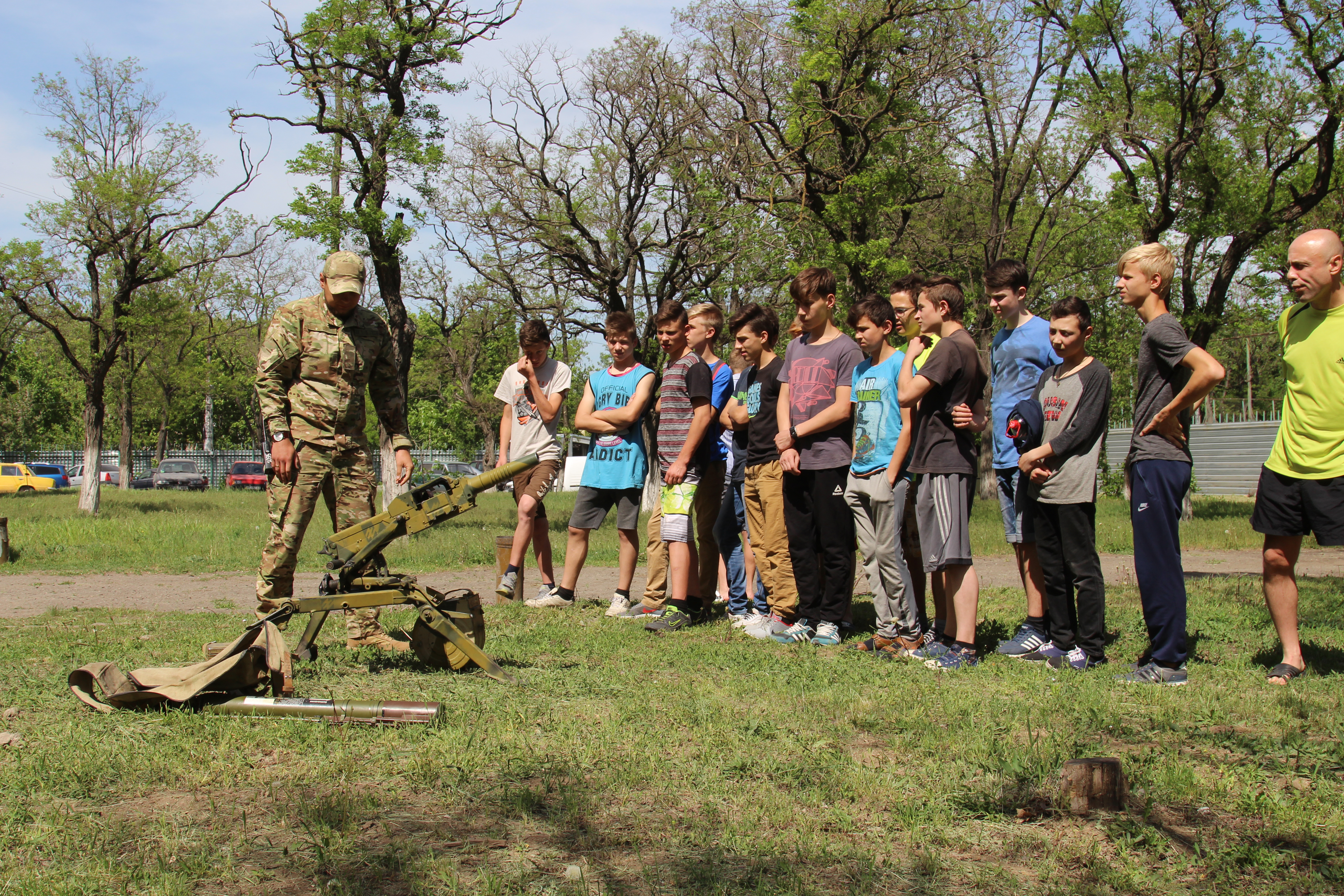 6 травня на гарнізоні полку АЗОВ у місті Маріуполь відбулась екскурсія для школярів дев’ятих класів загальноосвітньої школи-інтернату №2, де навчаються діти із малозабезпечених родин та діти, батьки яких позбавлені батьківських прав. Розпочалась екскурсія із демонстрації школярам гранатометів різної модифікації. Після невеличкої розповіді про технічні характеристики та роботу з цією зброєю діти рушили далі та отримали змогу постріляти в інтерактивному тирі – з автоматів та навіть ручного протитанкового гранатомета. Хлопці продемонстрували відмінні здібності, більшість із них чудово впоралась зі стрільбою по мішенях.