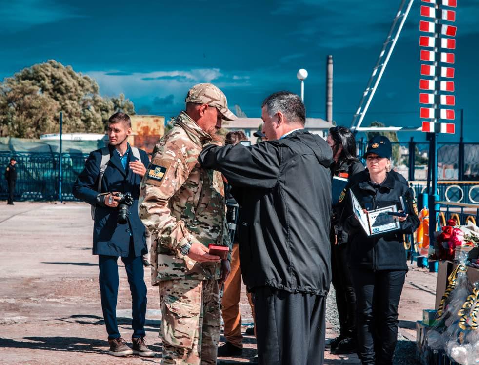 Сьогодні у місті Маріуполь відбулася урочиста церемонія відкриття частини водолазних пошуково-рятувальних робіт акваторії Азовського моря Державної служби надзвичайних ситуацій України у Донецькій області. Захід відвідало чимало почесних гостей, а в його рамках міністр внутрішніх справ України Арсен Аваков вручав нагороди зокрема й захисникам Маріуполя.