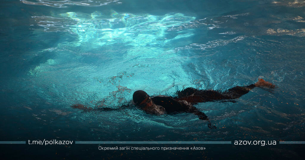 Найперше, що мали зробити азовці, – пропливти 500 метрів вільним стилем, при цьому вкластися у 12 хвилин. Усі впоралися із цим завданням, а один із бійців проплив 500 м за 7 хв 33 с – дуже хороший показник. Після запливу і короткого відпочинку – затримка дихання мінімум на хвилину. Це також не стало проблемою для азовців, а найкращий результат склав 2,32 хв. Далі – вправа не стільки на фізичну витривалість, скільки на психологічну. Це заплив на 25 метрів зі зв’язаними руками і ногами.