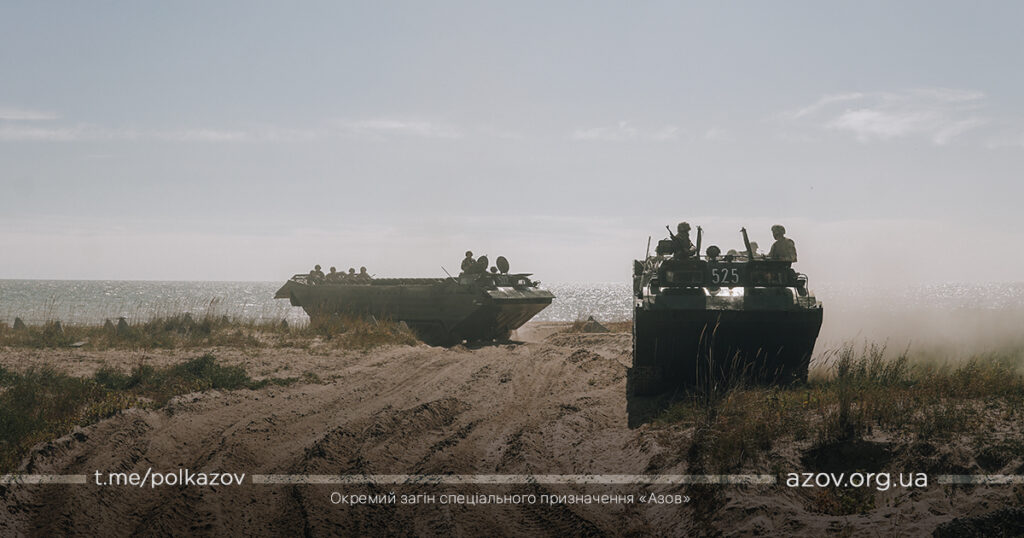 16 вересня на узбережжі Азовського моря відбулися планові навчання тактичної групи із завданням ведення протидесантної оборони. У відпрацюванні дій під час висадки противника було задіяно піхотні підрозділи, танкістів та артилерію полку «Азов».