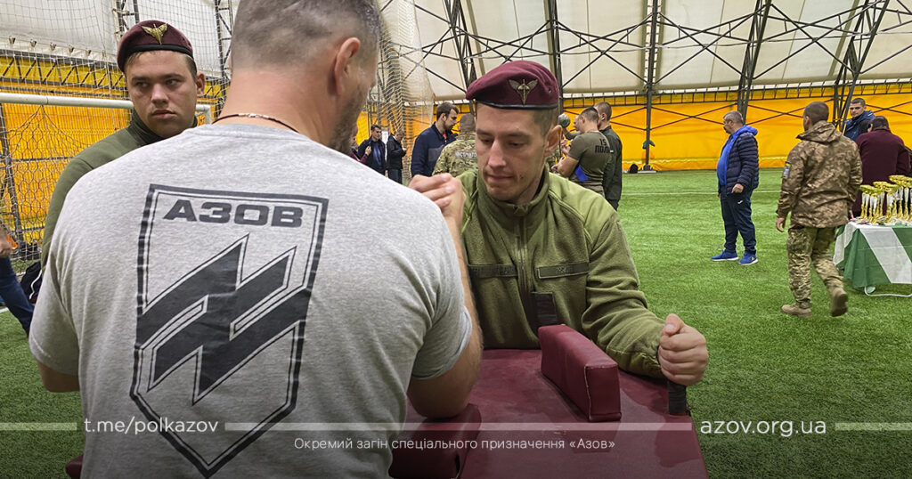 Боєць полку «Азов» на псевдо «Сидор» демонстрував свої фізичні здібності в армреслінгу і посів третє місце. Він зазначає, що вперше брав участь у таких змаганнях і спеціально не готувався до них, але завдяки загальній фізичній підготовці зміг дійти до півфіналу.