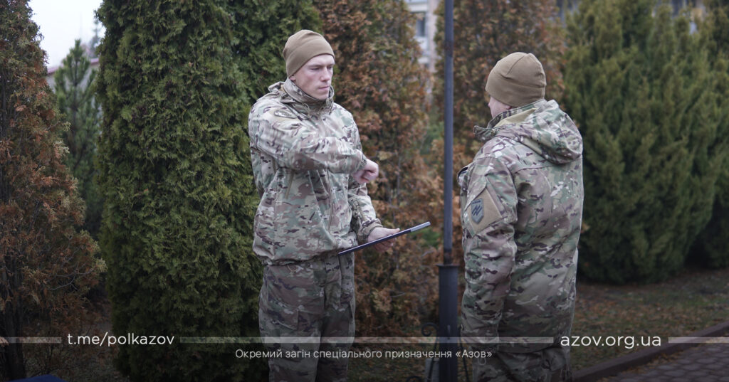 Під час ранкового шикування на одному з гарнізонів полку бійців «Азову» нагородили відомчими відзнаками НГУ та ТГР «Маріуполь».