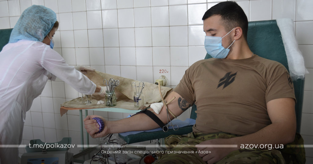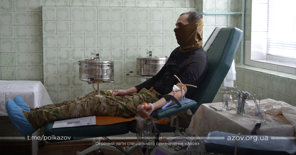 Бійці полку «Азов» вже не вперше беруть участь у благодійних заходах зі здачі крові. 18 лютого у Маріупольській станції переливання всі охочі азовці (а таких виявилося немало) отримали змогу стати донорами та подарувати шанс на порятунок усім, хто цього потребує. Перед донацією бійці пройшли обов’язкові етапи – реєстрацію, медичні обстеження тощо – та отримали допуски.
