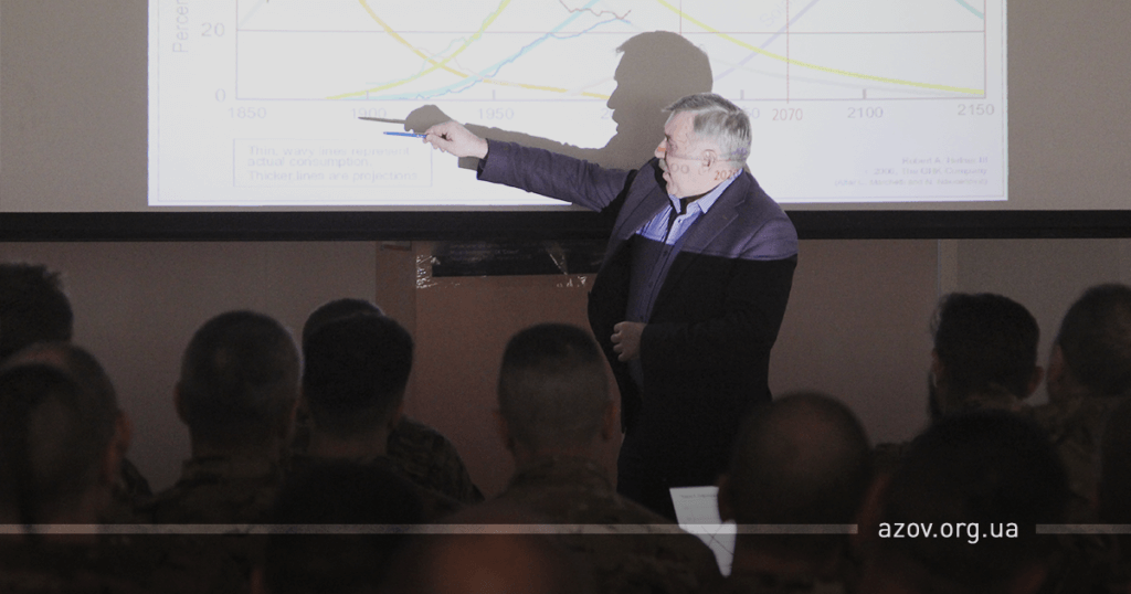 24 січня на одному з гарнізонів полку «Азов» відбулась пізнавальна лекція на тему «Світ в трансформації: військово-енергетичний вимір», яку для офіцерів підрозділу прочитав президент Центру глобалістики «Стратегія ХХІ» Михайло Гончар.