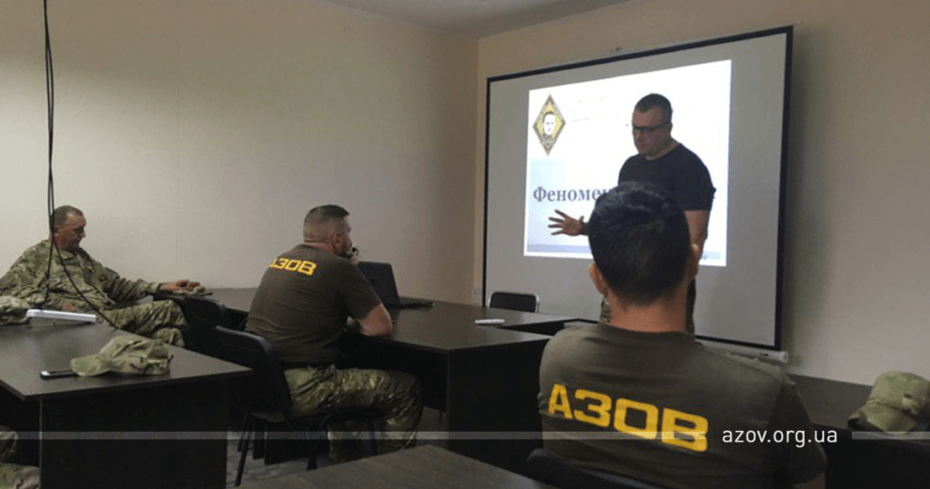 Провів для азовців лекцію Владислав Дутчак – кандидат філософських наук, доцент, провідний лектор та методист Освітнього Дивізіону Національного Корпусу друг Доцент. Військовослужбовці дізнались про важливі та дійсно пізнавальні моменти з історії боротьби наших пращурів та творення їх ідеології. Були розглянуті конкретні історичні битви та конфлікти, штатна структура запорізького війська, його оснащення та особливі тактичні прийоми, якими козаки користувались під час боїв.