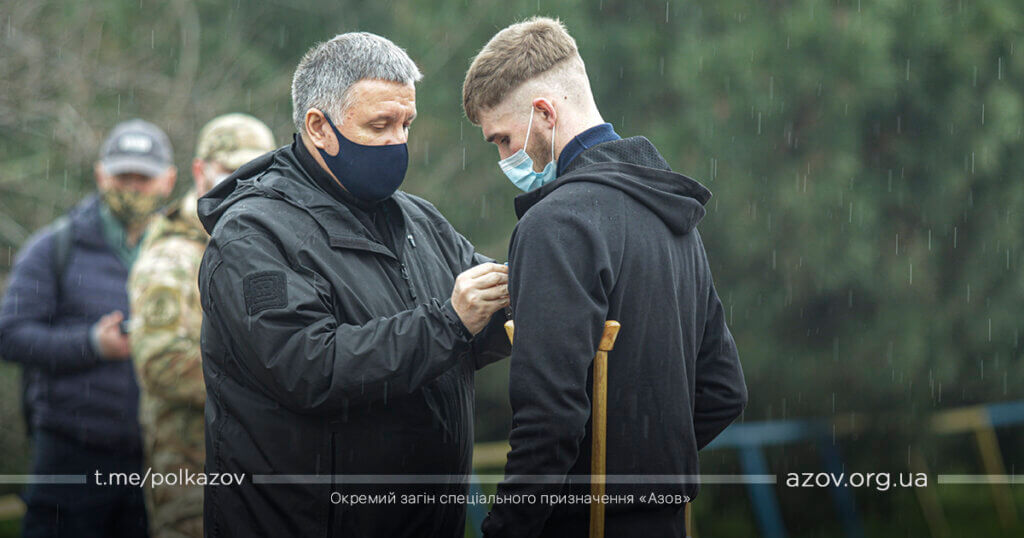 У рамках зустрічі командир «Азову» капітан Денис Прокопенко (друг Редіс) здійснив доповідь, під час якої окреслив основні напрямки службово-бойової діяльності підрозділу. За особисту мужність, виявлену у захисті державного суверенітету і територіальної цілісності України, зразкове виконання військового обов’язку, високий професіоналізм Арсен Аваков вручив азовцям почесні нагороди – медалі «За військову службу Україні» та вогнепальну зброю. Також командиру ОЗСП «Азов» капітану Денису Прокопенку було вручено сертифікат на дві одиниці спеціалізованих бронеавтомобілів «Новатор».