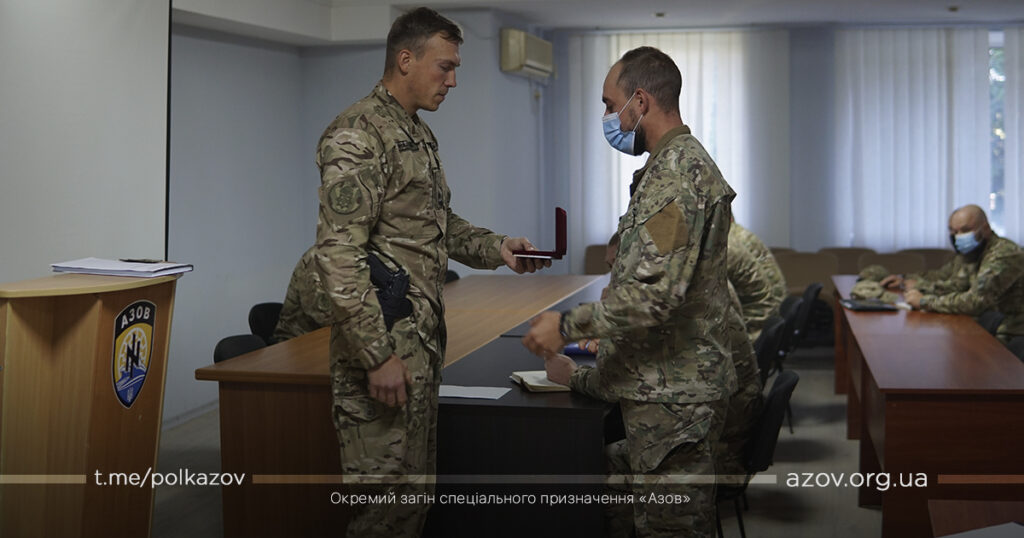 1 Жовтня, 2021 Бійці полку «Азов» отримали почесні нагороди за виконання бойових завдань на першій лінії