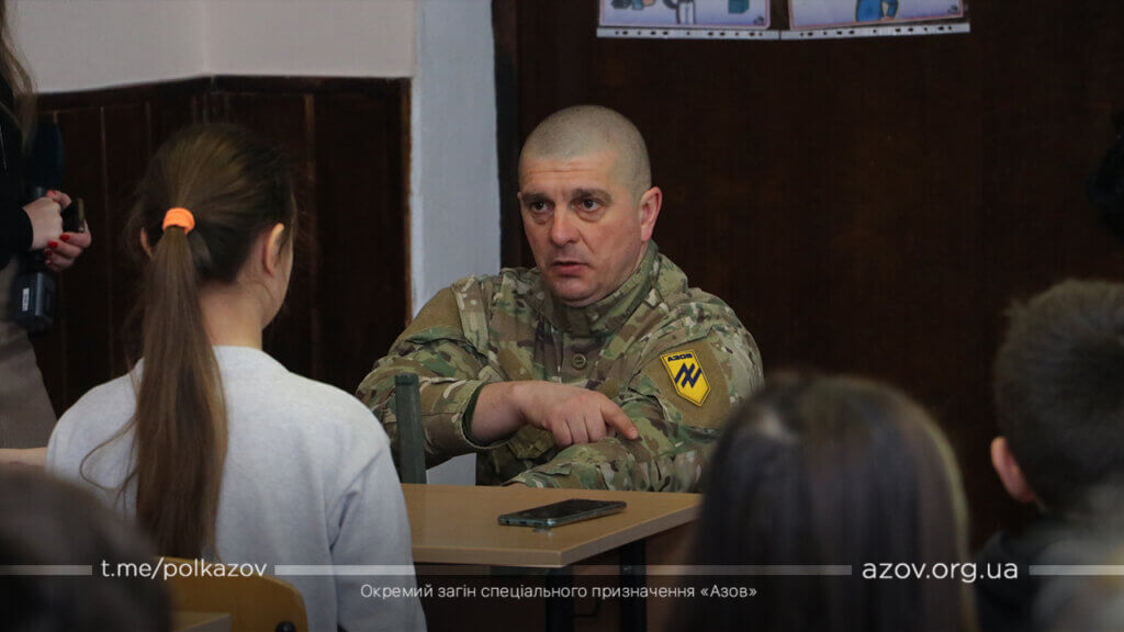 Задля обізнаності школярів у питаннях мінної безпеки, військовослужбовець інженерно-саперного підрозділу полку «Азов» на псевдо «Стохід» провів навчання щодо правил поведінки з вибухонебезпечними предметами для учнів загальноосвітньої школи № 9 міста Маріуполь.
