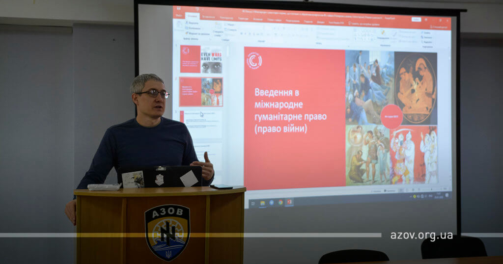 Під час лекції азовці дізналися про Міжнародні гуманітарні норми, пов’язані зі збройним конфліктом, застосування МГП, джерела, правові рамки в Україні і світі та зміст конвенцій і протоколів. За словами Артема Конопкіна, ознайомлення з цією галуззю права важливе тому, що ми ведемо війну на власній території, а завдання її полягає у зменшенні супутніх втрат серед цивільного населення, військових та об’єктів інфраструктури.