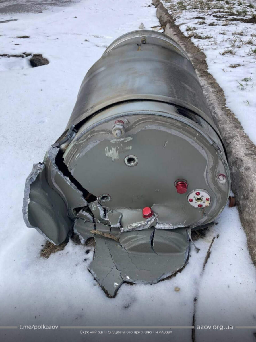 Це фрагменти 300мм ракет системи залпового вогню “Смерч”, якими росіяни безперервно обстрілюють цивільне населення Маріуполя та всієї України.