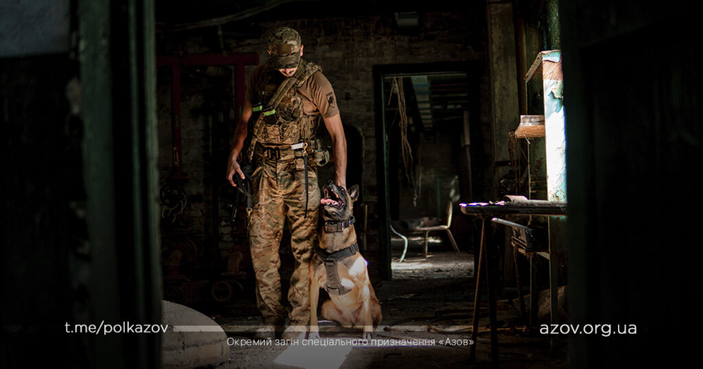Кінологи нашого підрозділу мають на службі 11 сторожових собак різних порід (бельгійські вівчарки (малінуа), добермани, ротвейлер та німецькі вівчарки). Кожній породі притаманні свої особливості та характеристики, необхідні для певної роботи. До прикладу, малінуа – це універсальна порода, тому їх і використовує більшість країн НАТО. Вони підходять як для пошуку по сліду, так і для затримання та конвоювання, розповідає кінолог полку «Азов» з позивним «Вівтар»: