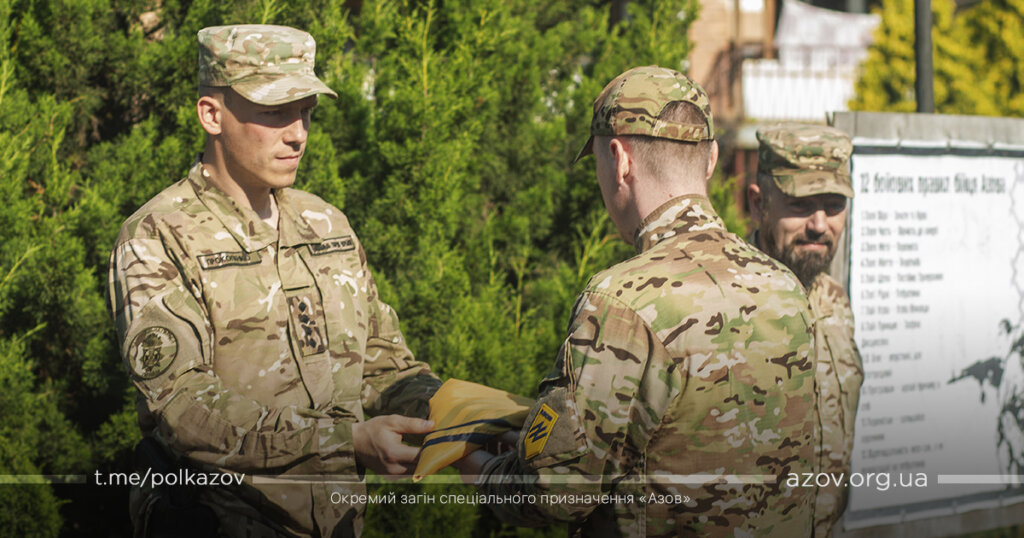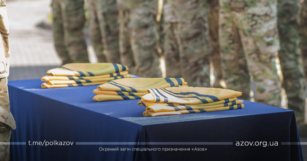 Підрозділ став для кожного бійця другою родиною, тож наостанок командир «Азову» Редіс урочисто вручив азовські прапори усім присутнім.