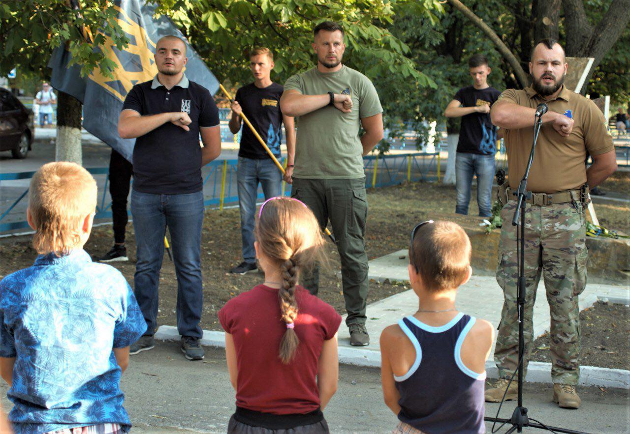 На заході був присутній перший командир полку АЗОВ, лідер Азовського руху Андрій Білецький, який відкривав пам’ятний знак. Перед присутніми він виголосив промову: «Сьогодні День Незалежності. Незалежність насправді – це не один день в календарі, це не парад і не урочисті святкування. Незалежність – це внутрішнє відчуття людини і цілого народу. Це відчуття, що є щось своє, що варто розвивати, за що варто боротися, що варто захищати. Найкраще, що може бути в День Незалежності, – це згадка про тих людей, які внутрішньо були незалежними, знали, що в них є своя країна, за яку треба боротися, які віддали найвищу ціну за ту саму незалежність. Тому саме сьогодні за старою козацькою традицією ми відкриваємо козацький хрест – хрест пам’яті тих, хто боровся і воював, здобував не паперову, а реальну незалежність. Їхній пам’яті та на славу майбутньої справжньої незалежності відкриваємо цей пам’ятник».