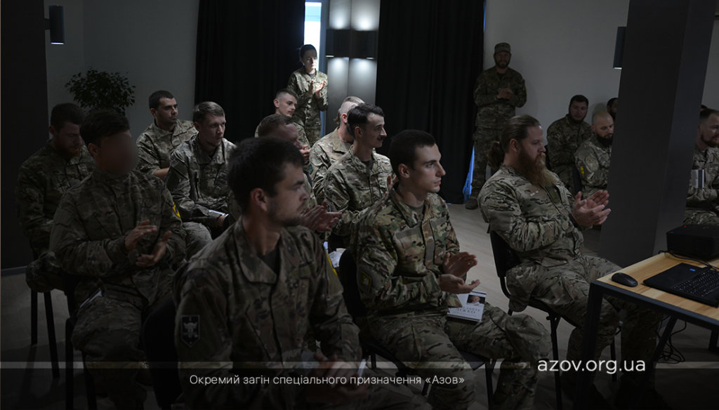 Також під час заходу командир полку подарував бійцям мотиваційні книжки американського адмірала Вільяма Макрейвена «Застеляйте ліжко», які, на думку командира, неодмінно стануть в нагоді на бойовому шляху азовців та допоможуть знайти правильні слова під час роботи з особовим складом, щоб направити їх на істинні життєві орієнтири.