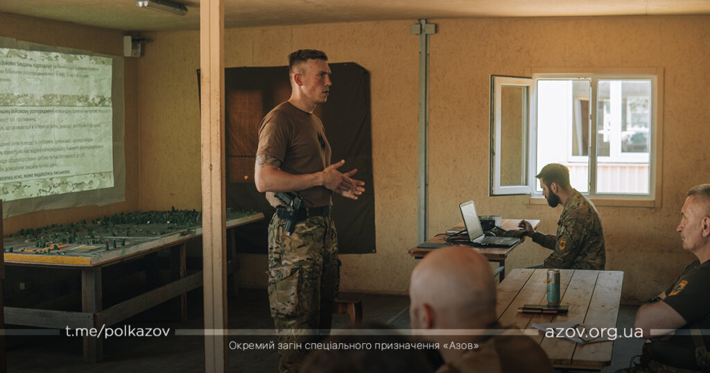 «Раз на п’ять тижнів ми збираємо весь молодший сержантський склад і здійснюємо підготовку по тій чи іншій тематиці у відповідності до плану бойової підготовки, – розповідає заступник командира «Азову» з бойової та спеціальної підготовки друг Гоголь. – На даний момент розглядається тематика дій на урбанізованій місцевості та поетапно відпрацьовується кожна деталь».