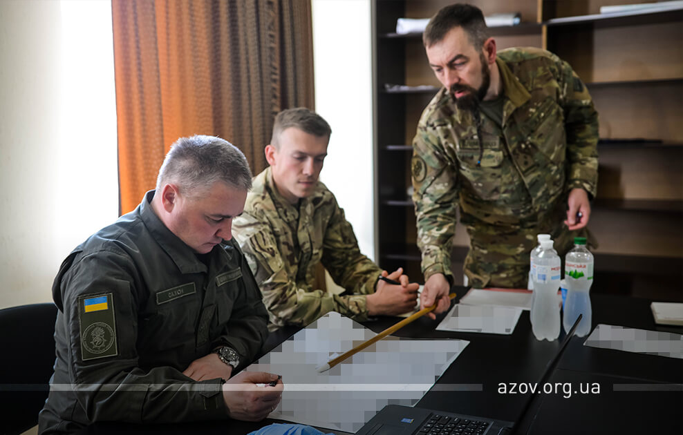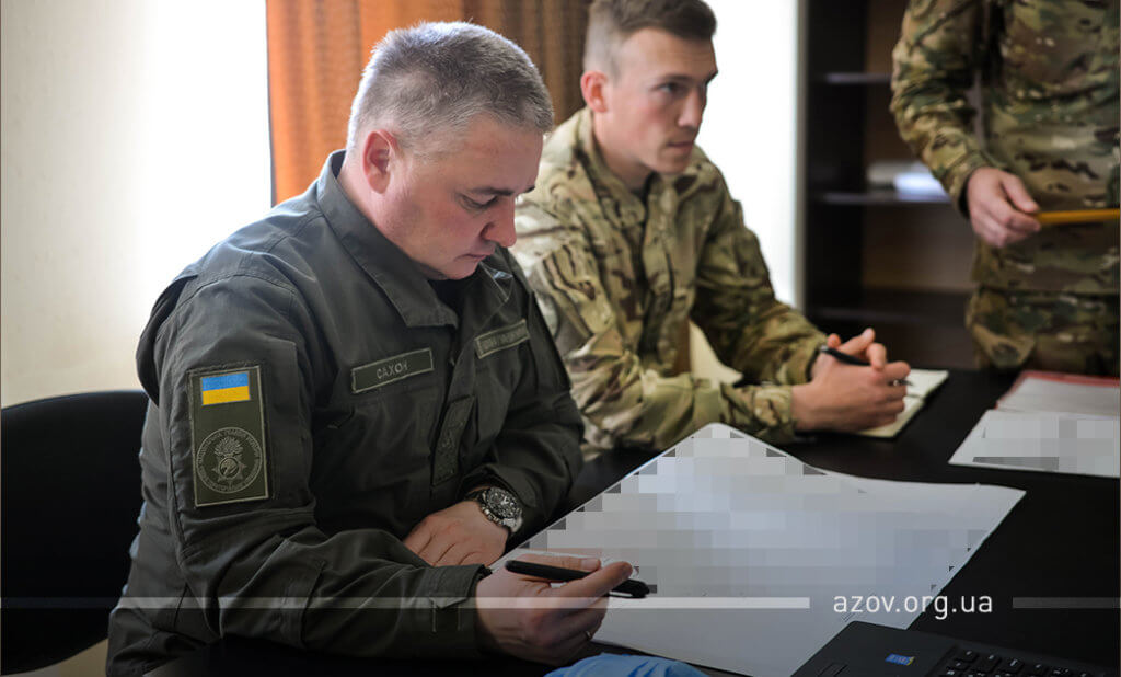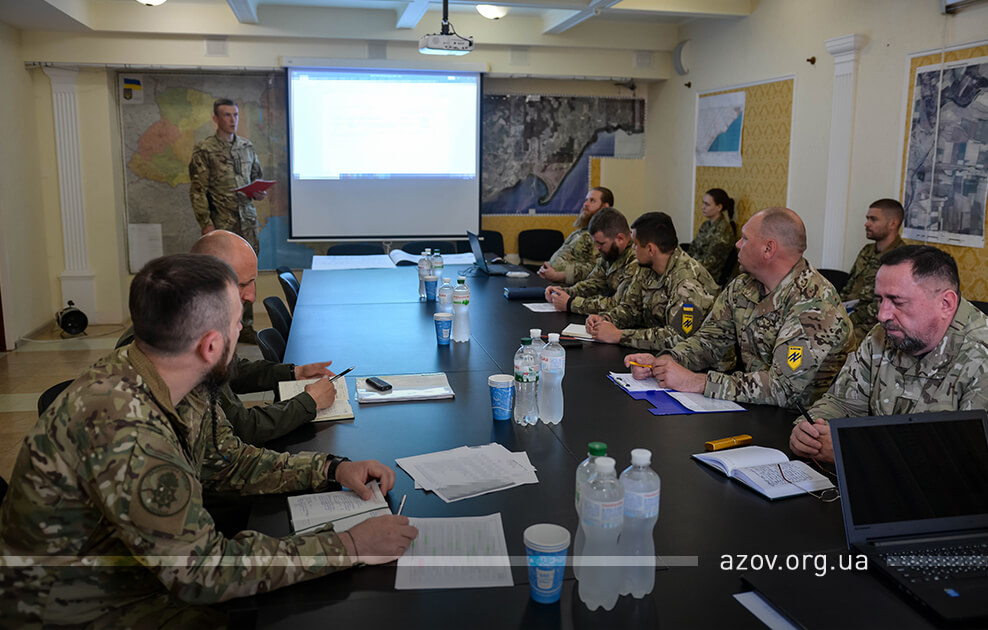 У рамках візиту до маріупольської військової частини 3057 НГУ ознайомитися з життєдіяльністю полку спецпризначення та заслухати звіт про виконання завдань, які покладені на полк на теперішній час, приїхав начальник Східного територіального управління Національної гвардії України генерал-майор Олег Сахон. Командир полку «Азов» Денис Прокопенко (друг Редіс) під час наради з генерал-майором у форматі доповіді назвав напрямки, куди «Азов» сьогодні скеровує свої основні зусилля, розповів про зміни, внесені до орг-штатної структури полку, та порушив інші вагомі питання. Начальник штабу та заступники зачитали доповіді щодо результатів діяльності по своїх напрямках.