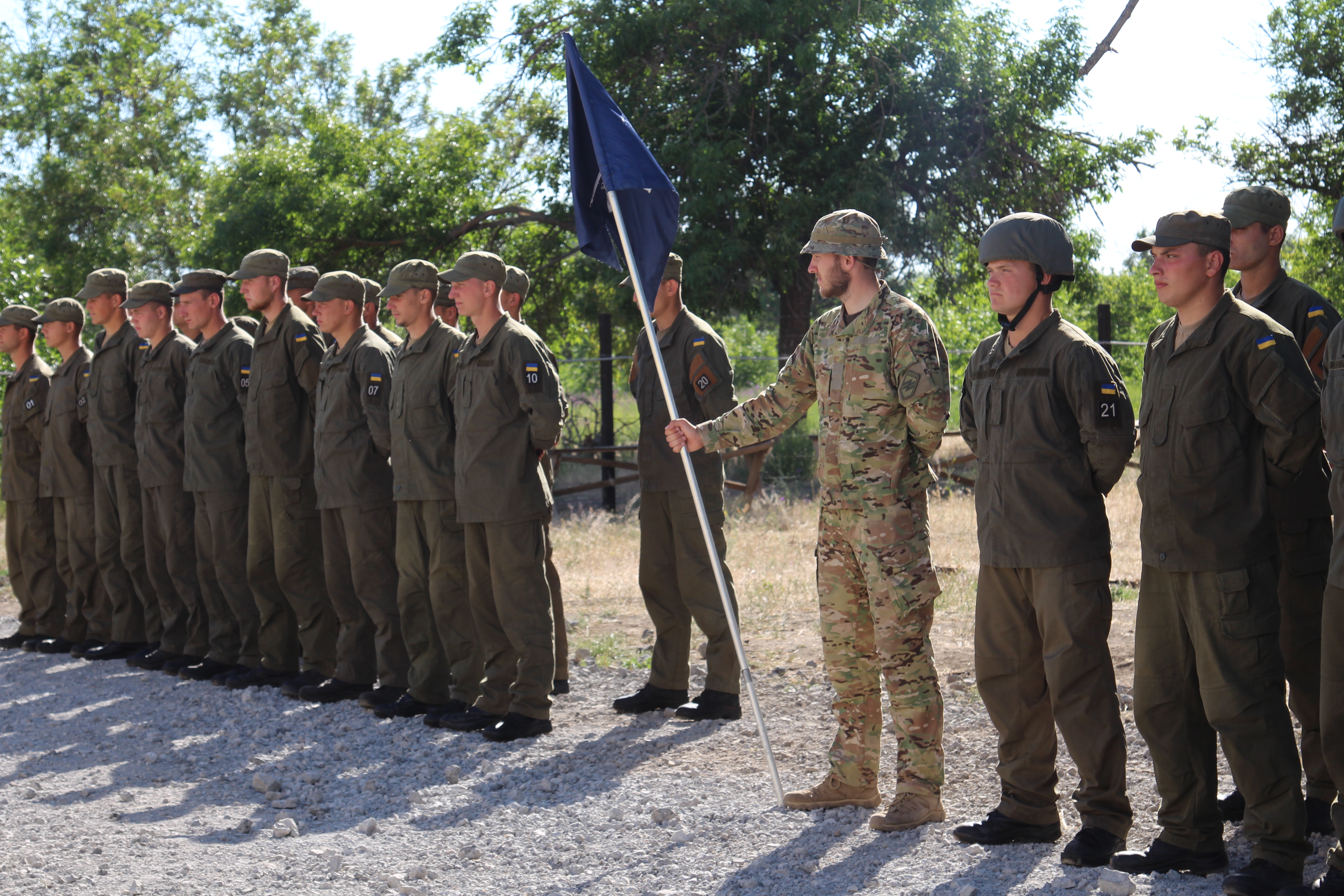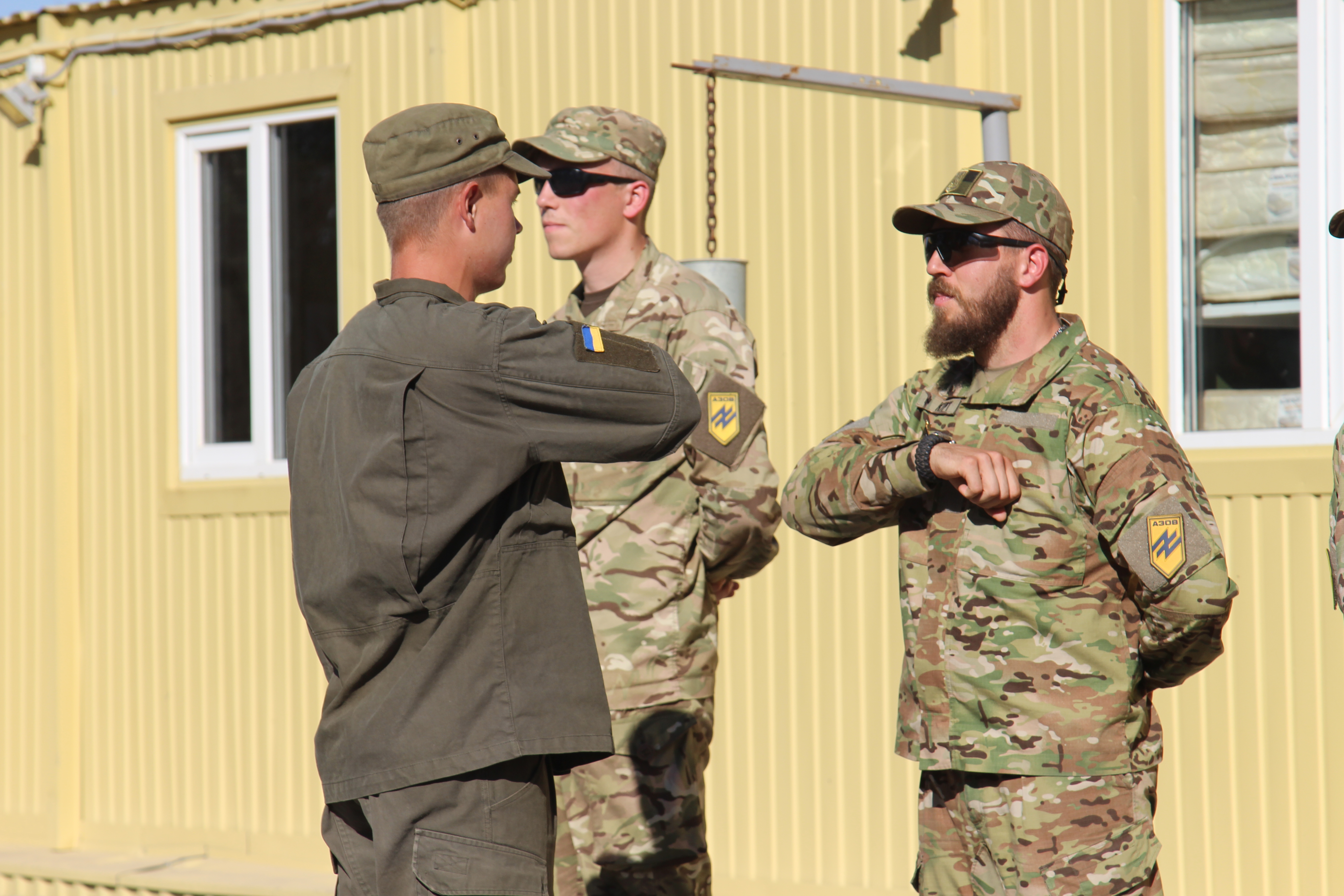 На полігоні урочистим врученням шевронів полку АЗОВ завкінчився базовий курс бойової підготовки, випускниками якого стали 27 найкращих, найсильніших та найвитриваліших рекрутів. Протягом дев’яти тижнів майбутні азовці під керівництвом вимогливих сержантів ВШК імені полковника Євгена Коновальця навчались військовій справі. Ті, хто впорався із курсом, не здалися на половині шляху та склали усі випускні іспити – отримали шеврони полку АЗОВ та поповнили ряди обраних ними підрозділів. Розпочав церемонію вручення шевронів начальник ВШК друг Кірт, який наголосив на тому, що всі рекрути, які пройшли курс молодого бійця, – справжні чоловіки, що змогли переступити через себе та виграти свій перший бій – бій із самим собою.